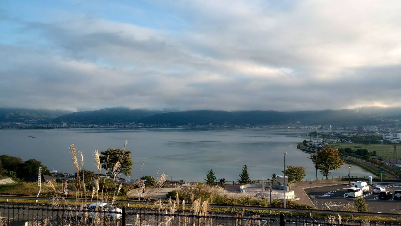 諏訪湖を見下ろすSAに到着。